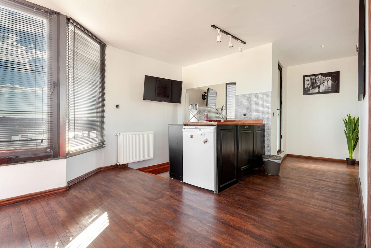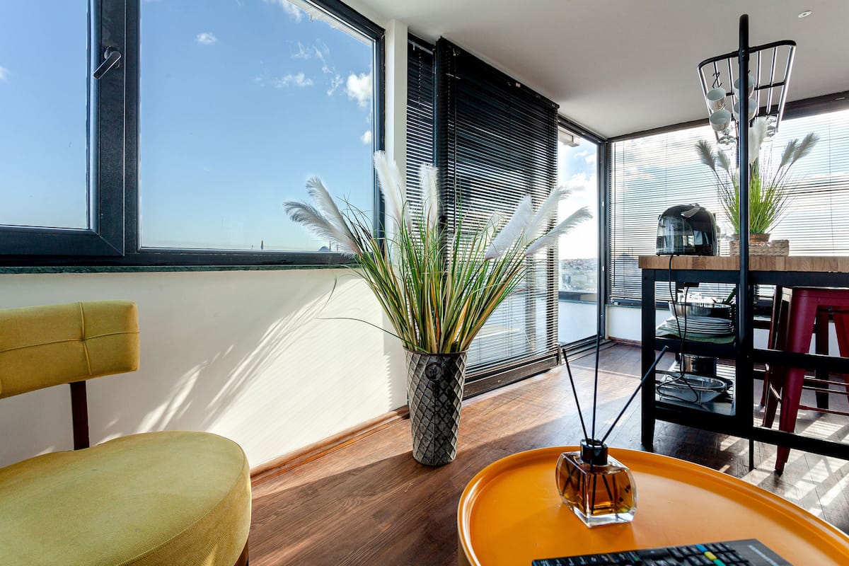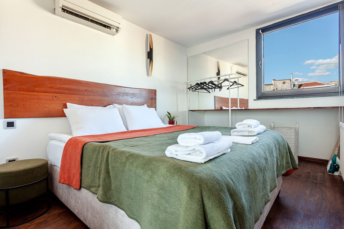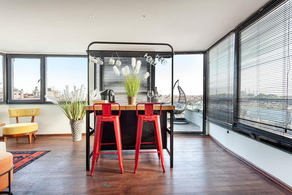Recently renovated with high-quality materials, the interior blends modern comfort with the timeless character of Istanbul. Large windows fill the space with natural light, creating a bright and welcoming atmosphere. Enjoy your morning coffee with the Golden Horn breeze or have a romantic dinner under the evening skyline of the Historic Istanbul and Galata.