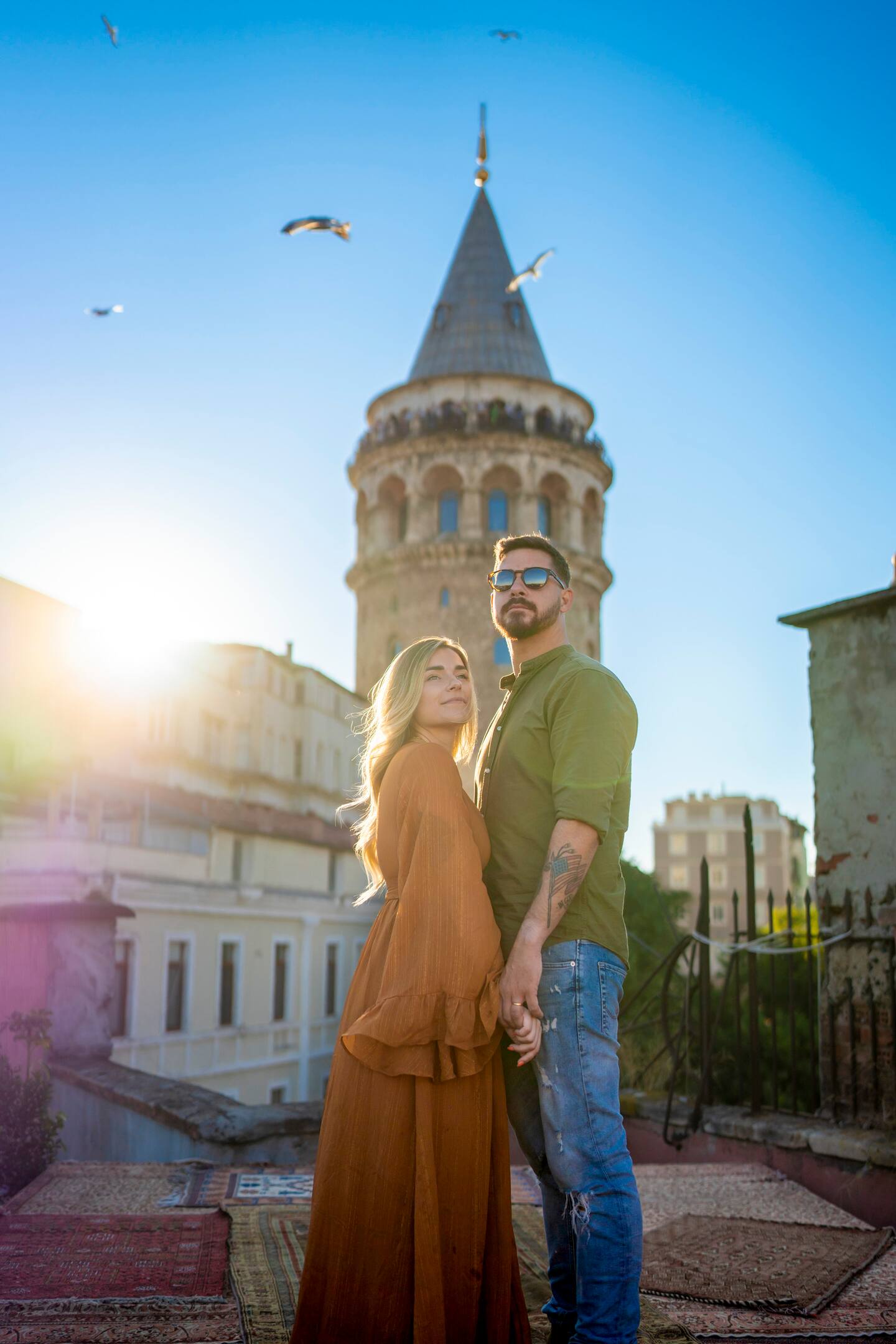 - Professional “flying dress” rooftop photoshoots